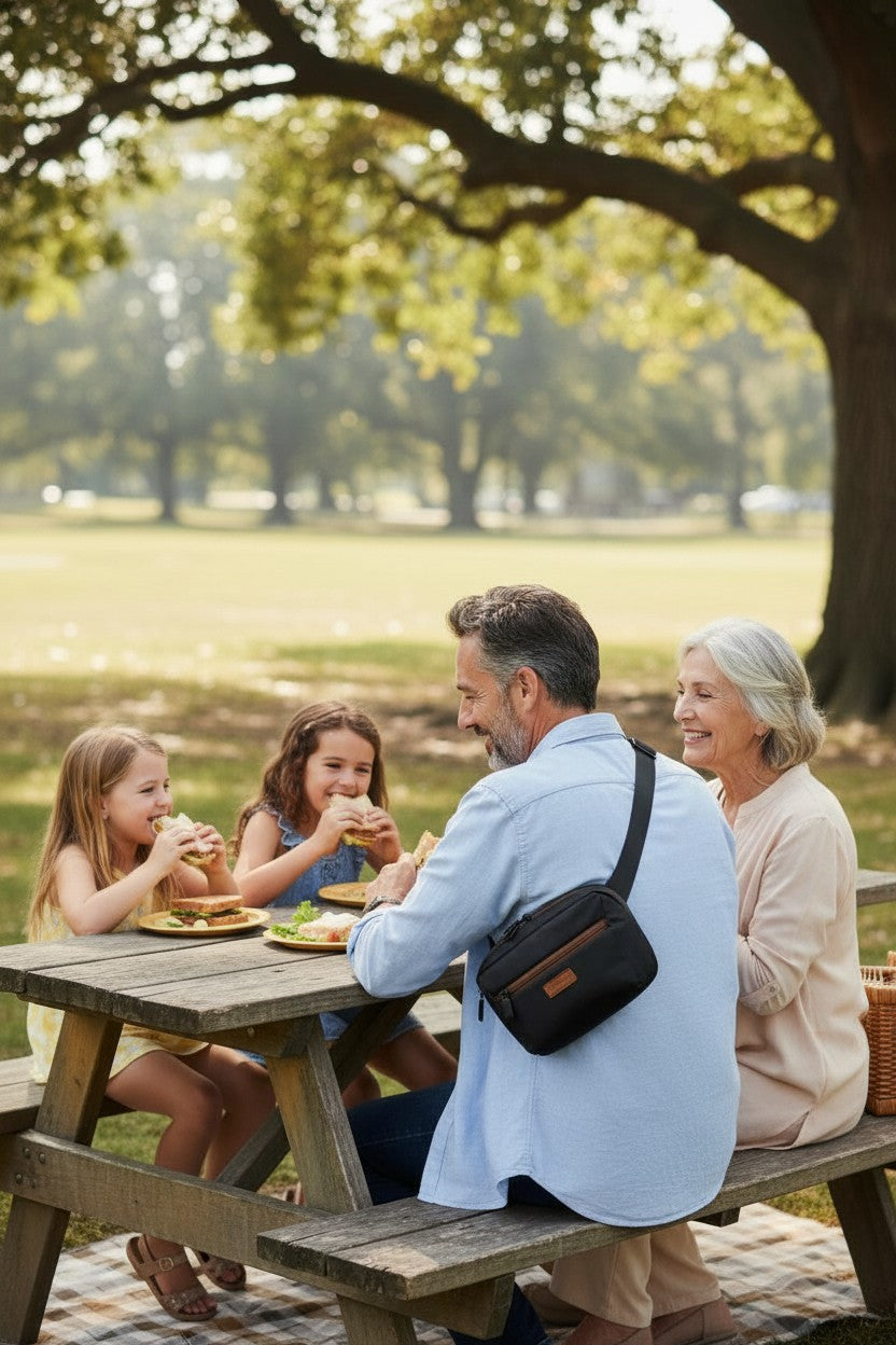Meet the upgraded crossbody sling designed to do more. With extra room and thoughtfully placed pockets, this larger sling keeps your essentials organized and easy to find—whether you’re navigating daily life or packing for travel. Built from durable, high-quality materials, it protects what matters most while maintaining a clean, modern look. Stylish yet practical, it’s the perfect blend of form and function for wherever your day takes you.